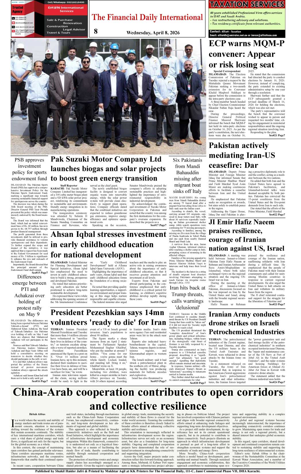 The-Financial-Daily-Epaper 08-04-2026 Page: 8 April 08, 2026 The-Financial-Daily-Epaper 08-04-2026 << First << 8 >> Last >> Page 1Page 2Page 3Page 4Page 5Page 6Page 7Page 8 × The-Financial-Daily-Epaper 08-04-2026 The-Financial-Daily-Wednesday-8-April-2026-1The-Financial-Daily-Wednesday-8-April-2026-2The-Financial-Daily-Wednesday-8-April-2026-3The-Financial-Daily-Wednesday-8-April-2026-4The-Financial-Daily-Wednesday-8-April-2026-5The-Financial-Daily-Wednesday-8-April-2026-6The-Financial-Daily-Wednesday-8-April-2026-7The-Financial-Daily-Wednesday-8-April-2026-8 The-Financial-Daily-Wednesday-8-April-2026-8